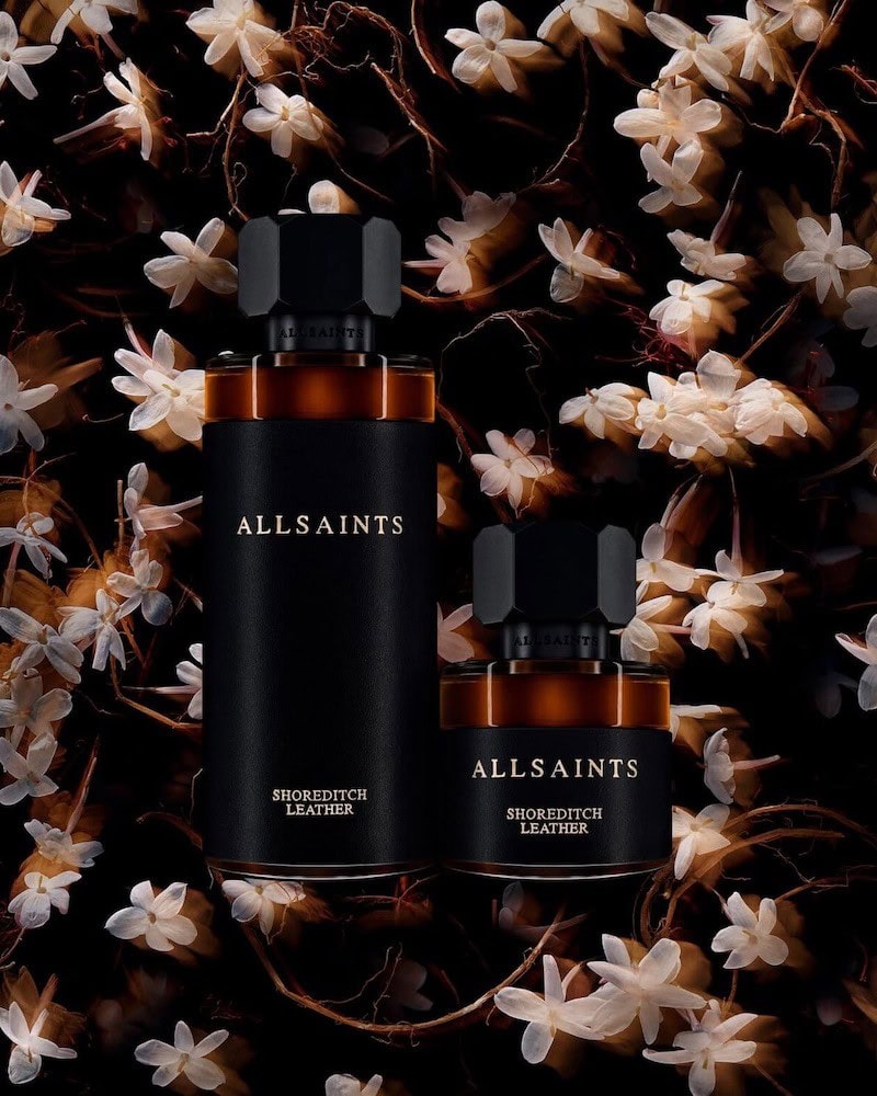 Founded in 1994, AllSaints started as a men’s fashion label, but quickly expanded its reach to include women’s wear. Named after All Saints Road in London’s iconic Notting Hill, the brand drew inspiration from the area’s eclectic youth culture. The street was known for its vibrant mix of fashion, art, and music – concepts that have remained integral to AllSaints’ DNA. Over the years, the brand has evolved into a symbol of urban chic, with a strong focus on grunge-inspired elements, unconventional silhouettes, and an undeniable love for leather. It’s no surprise that Shoreditch Leather, one of the key fragrances in the new collection, is a nod to the brand’s signature material.