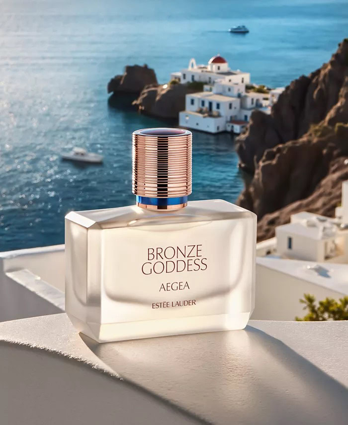 Estée Lauder Bronze Goddess Aegea Eau de Parfum, launched in 2025, is a Floral Woody Musk fragrance for women. The scent evokes the radiant beauty of the Aegean islands, opening with bergamot, ylang-ylang, and violet leaves. The heart reveals fig, pink bougainvillea accord, and jasmine sambac absolute, followed by a base of sandalwood, coconut milk, and musk. It embodies a serene, sunlit escape where sea air meets lush gardens in full bloom.