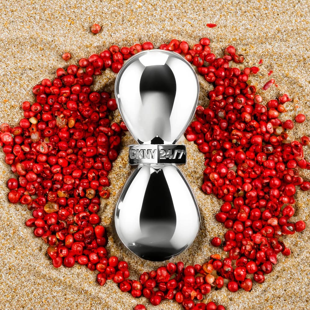 DKNY 24/7 kicks off with a stimulating array of top notes. The sharp zest of pink pepper cuts through the subtle tartness of rhubarb, providing an invigorating opening. Meanwhile, the unique addition of Quincester – a specialty note from Firmenich – offers a fresh, sour quince scent that innovates from the first encounter.