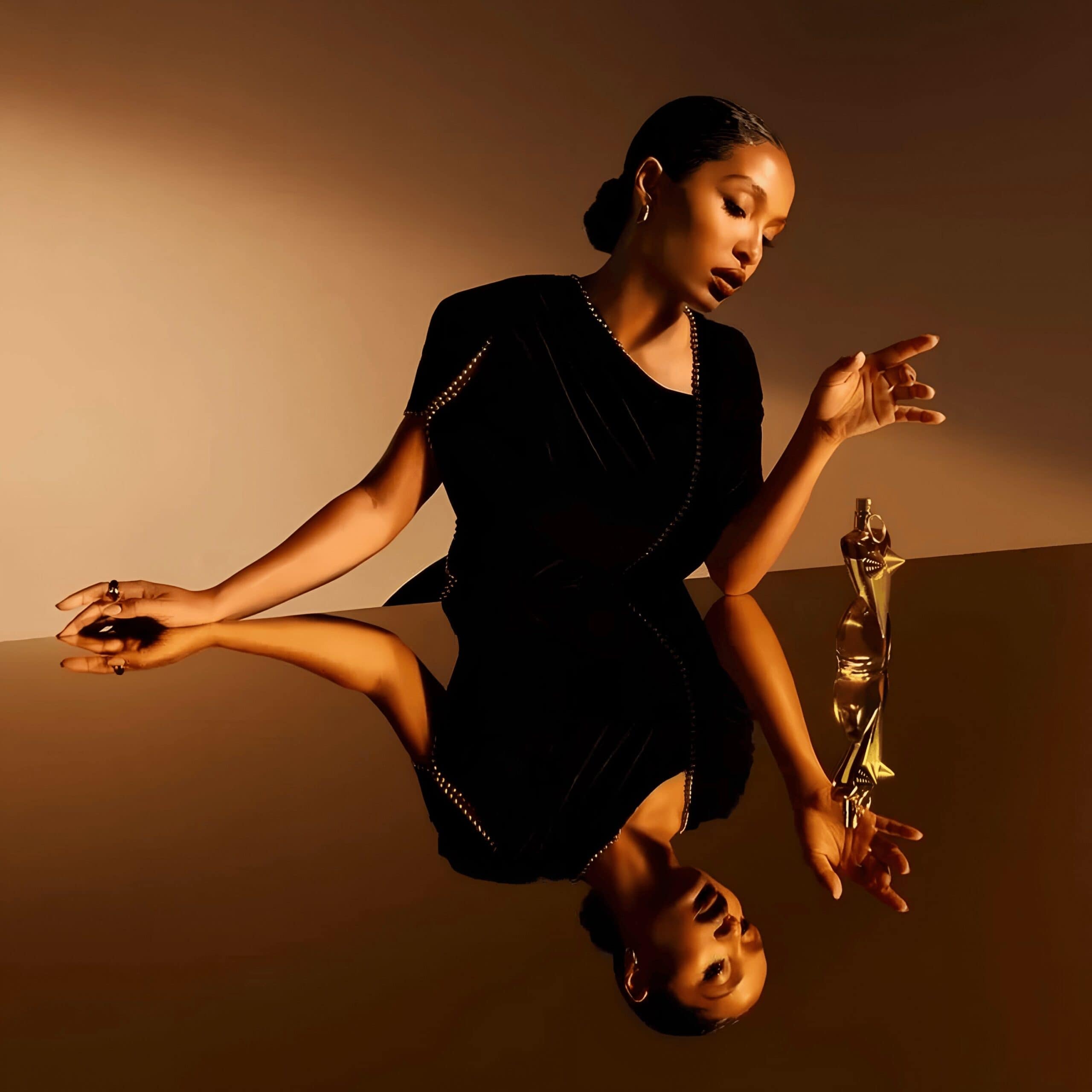 Yara Shahidi once again becomes the face of Divine Elixir. Her charisma and authenticity anchor the campaign, channeling the scent’s vivid character. With poise and magnetic presence, she breathes visual life into the concept of a modern goddess, connecting every detail of fragrance, form, and story.