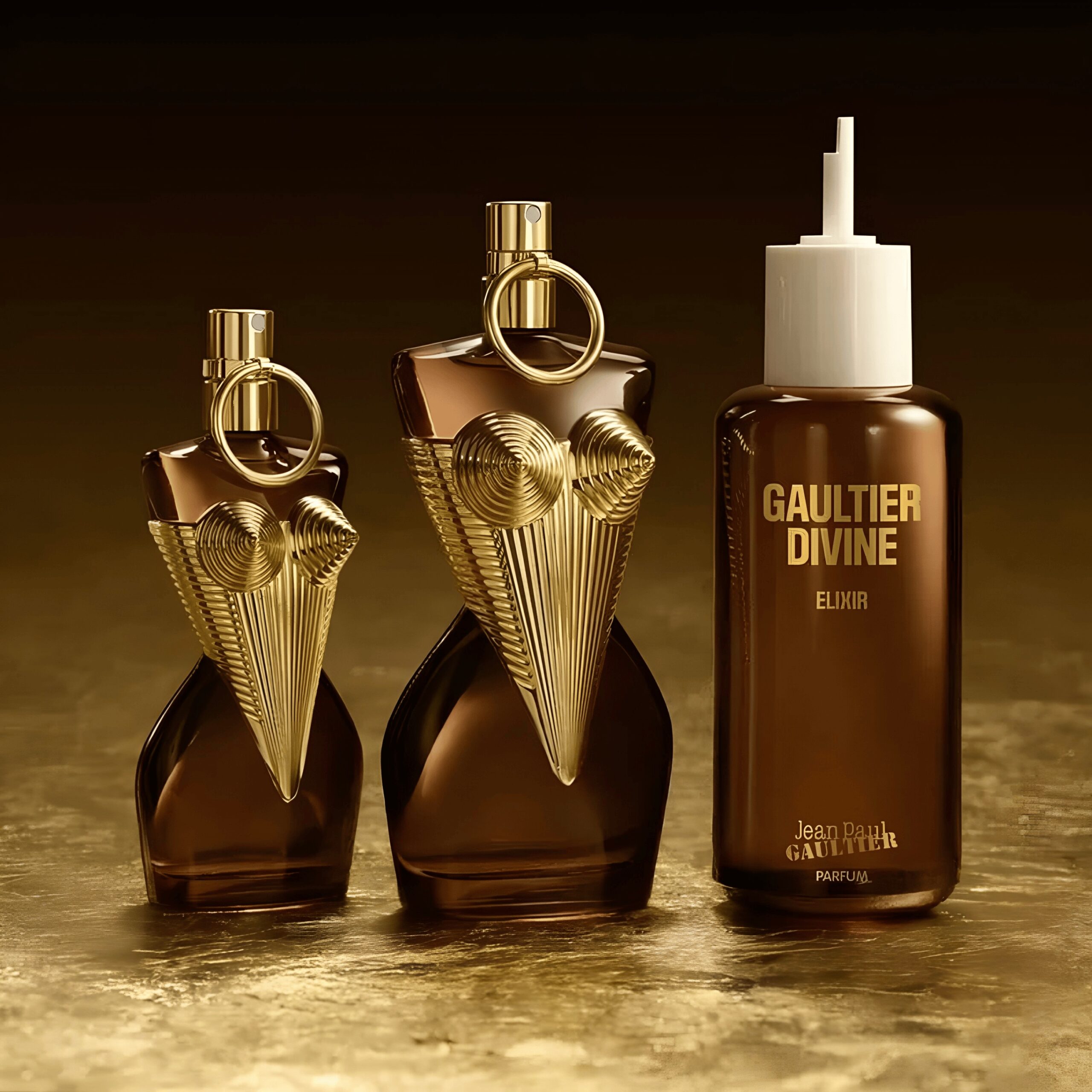 Jean Paul Gaultier Divine Elixir Parfum is available in 50ml and 100ml refillable bottles. The fragrance is offered at Gaultier boutiques, authorized perfume retailers, and selected online distributors.