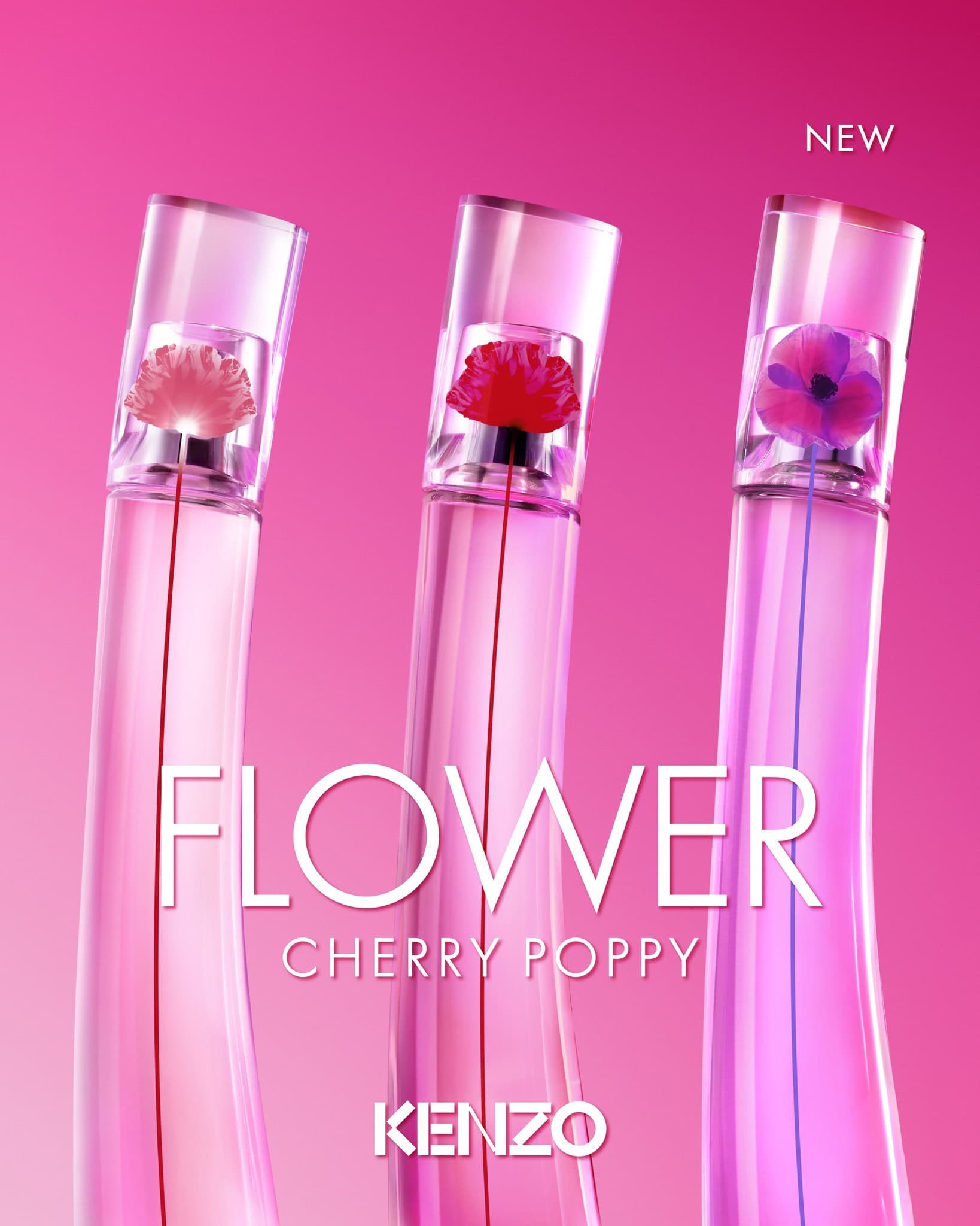Kenzo Flower By Kenzo Cherry Poppy Eau de Parfum 2025 presents a confectioner's blend of delicious flavors inspired by the art of Japanese pastry making. With a tender and tangy character, this fragrance reinvents the gourmet scent with an irresistibly enjoyable aroma. Tart black cherry awakens the taste buds, while a floral heart of Damascene Rose and Water Lily overflows with femininity. The base is a comforting blend of soft White Musk and Virginia Cedarwood essence, creating a unique, subtly juicy aroma. A unique creation of Dora Baghriche, this fragrance is composed of 91% natural ingredients and features a legendary bottle adorned with Kenzo’s signature pink and violet poppy and a tempting explosion of cherry.