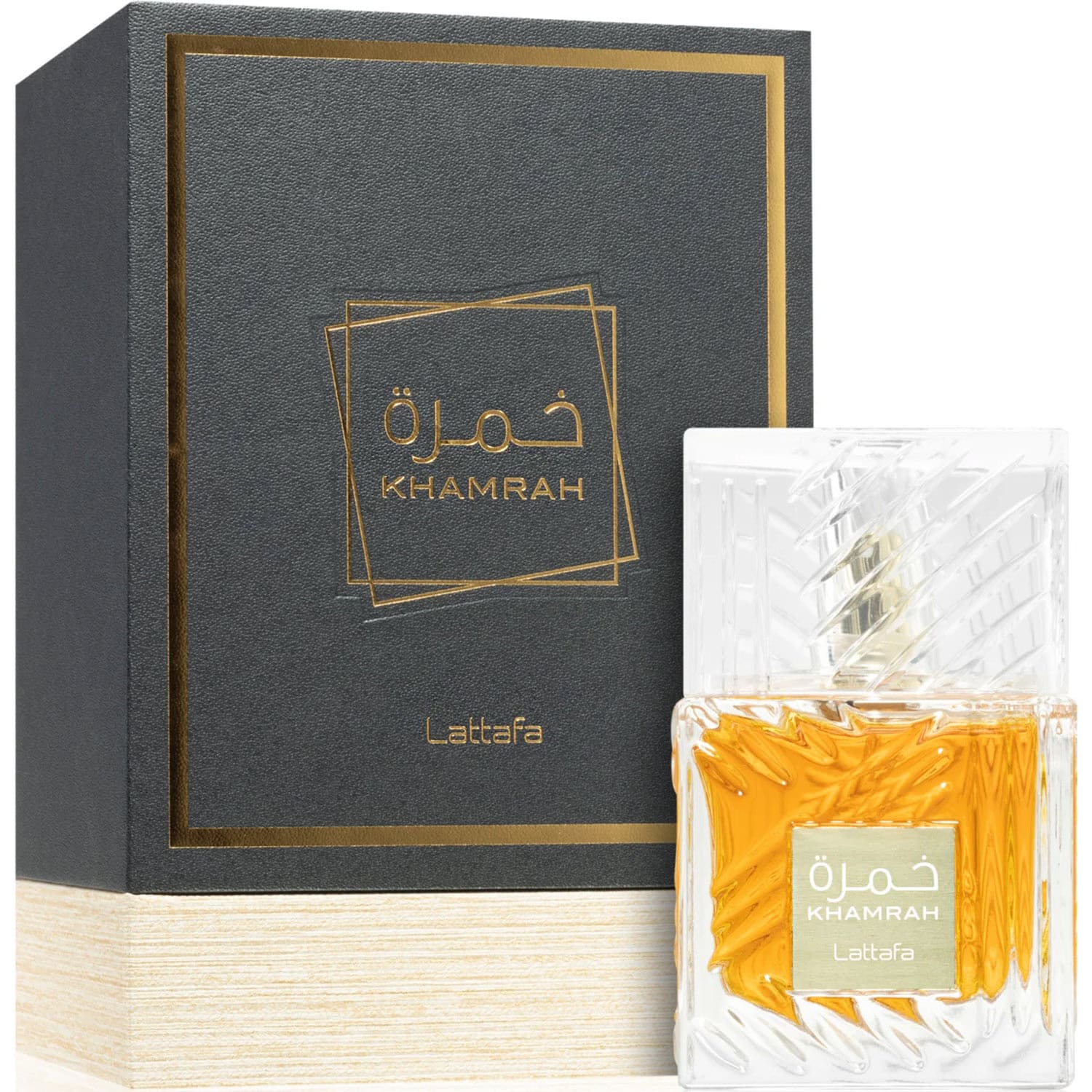 Khamrah by Lattafa Perfumes is an exquisite Aromatic Spicy fragrance designed for both women and men, launched in 2022. This unisex perfume embodies a perfect balance between warmth, sweetness, and exotic spice, making it an unforgettable sensory journey. The fragrance opens with a vibrant blend of cinnamon, nutmeg, and bergamot, creating an intoxicating first impression that is both spicy and fresh. As it develops, Khamrah unveils a sumptuous heart of rich dates, creamy praline, and sensual tuberose, rounded off by the subtle floral elegance of Mahonial. The base notes are a masterful composition of creamy vanilla, earthy tonka bean, and the resinous depth of myrrh and benzoin. These are further enhanced by the woody richness of amberwood and the distinctively spicy complexity of Akigalawood, creating a lingering, seductive trail that captivates the senses. Khamrah is a fragrance that speaks to those who appreciate sophistication and mystery, offering an alluring fusion of sweet, warm, and spicy accords. It’s an ideal scent for evening wear, special occasions, or whenever you want to make a statement that lingers long after you've left the room.