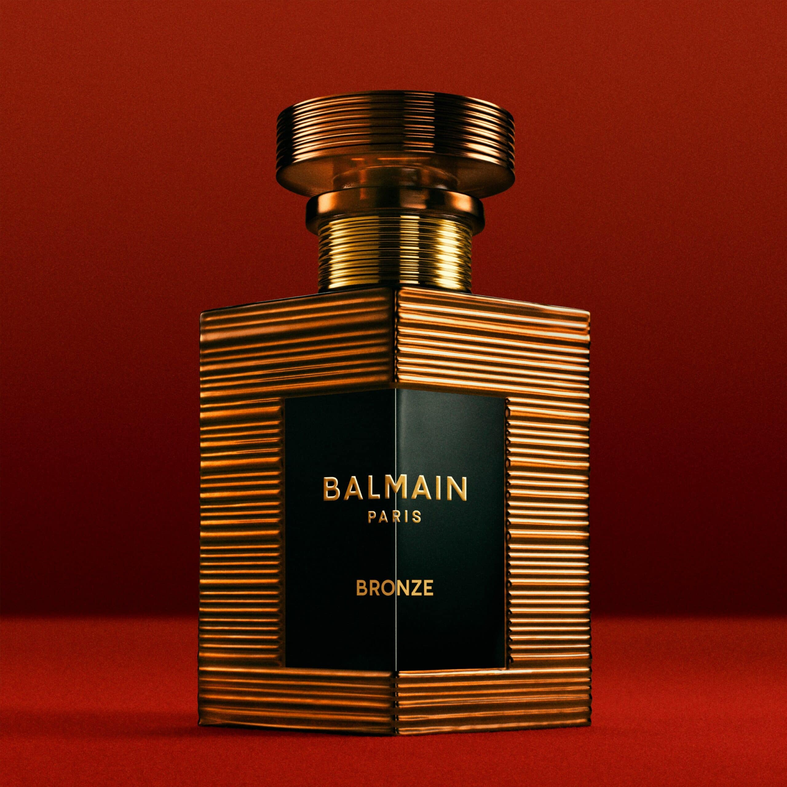 - Bronze Eau de Parfum: Encased in a metallic copper bottle, Bronze symbolizes rebirth, inspired by Rousteing’s personal journey of healing. The fragrance contrasts blazing cedarwood with the cooling freshness of patchouli, underscored by the raw, primal energy of tobacco and black pepper.