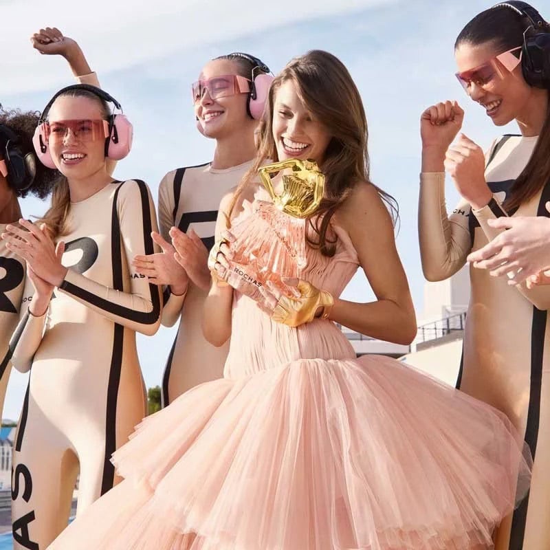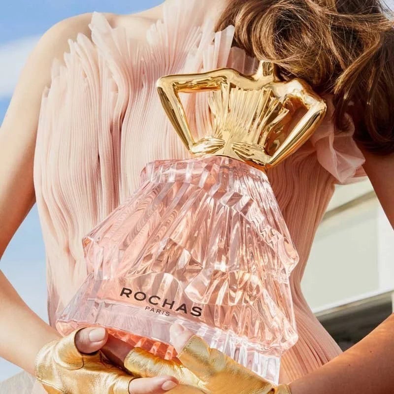 The Rochas Audace bottle is an embodiment of artistry and femininity. Shaped as a couture-inspired silhouette, the design reflects the brand’s commitment to elegance. The golden bust forms the cap, while the faceted glass dress below refracts light beautifully. Every detail speaks to the idea of celebrating women who exude confidence and embrace their uniqueness.