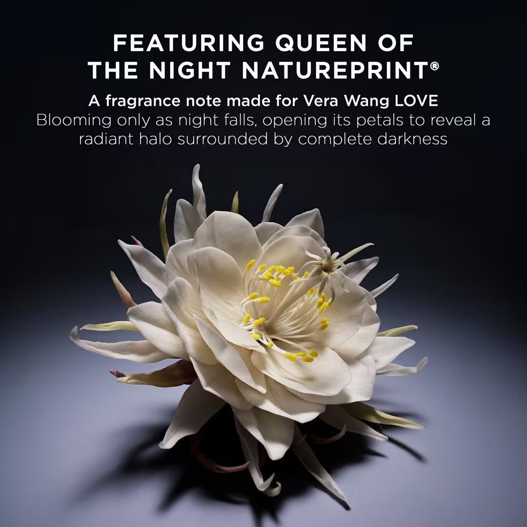 At the heart of Vera Wang LOVE is an ingredient made to measure: Queen of the Night, also known as Belle de Nuit. This rare flower opens only after sunset, revealing its petals briefly in the dark, as if timed to emotion rather than daylight. That fleeting quality informs the soul of this perfume. It is not ornamental. It is sensory, complex, and intentionally feminine.